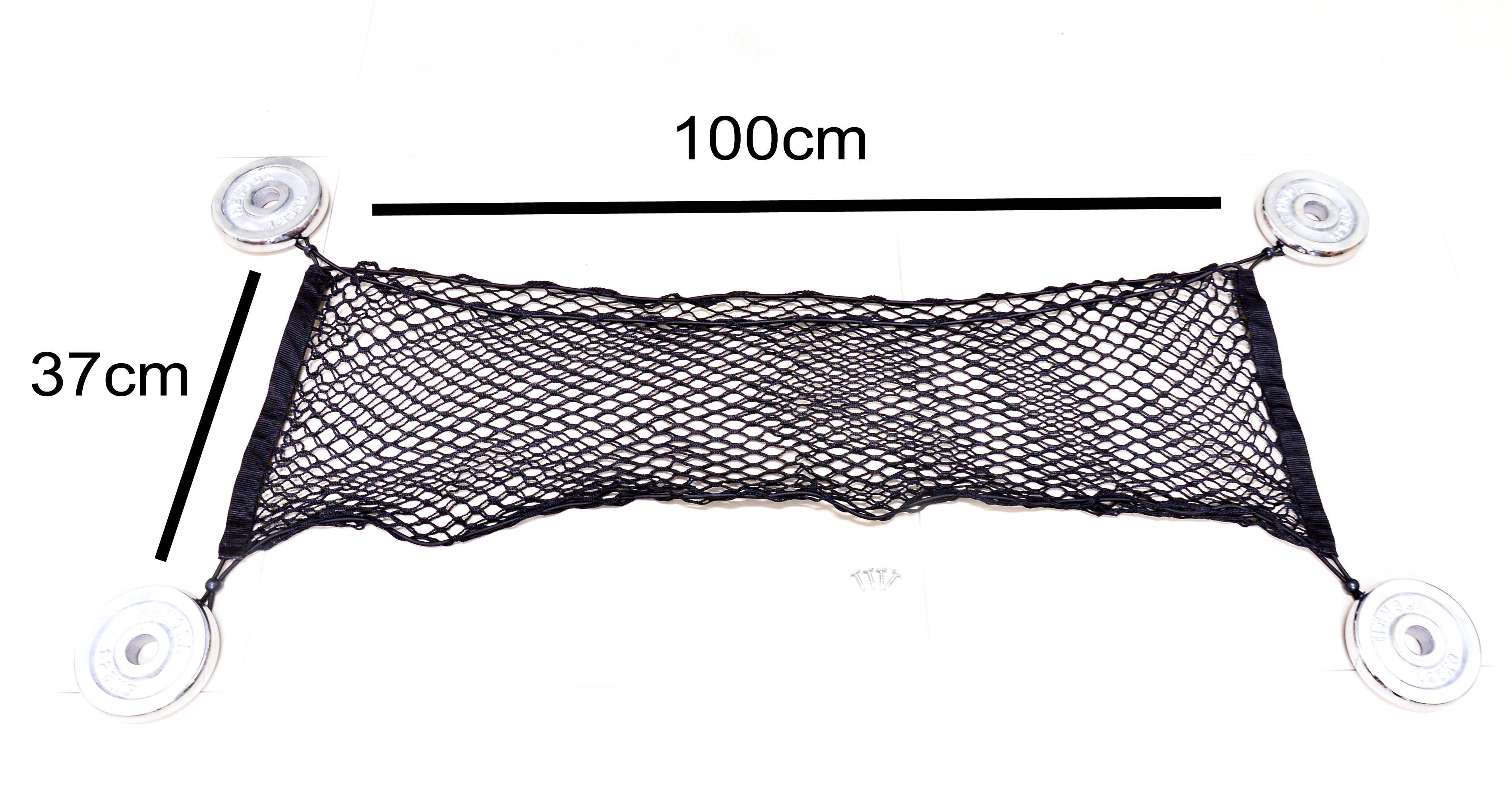 貨物網隨附四個掛鉤和螺絲,只需使用十字螺絲刀即可快速完成安裝,操作簡單又牢固。網子最大承重14公斤,非常適合日常使用。為了安全起見,請將尖銳物品包裹妥當,以避免損壞網子或對其他物品造成傷害。