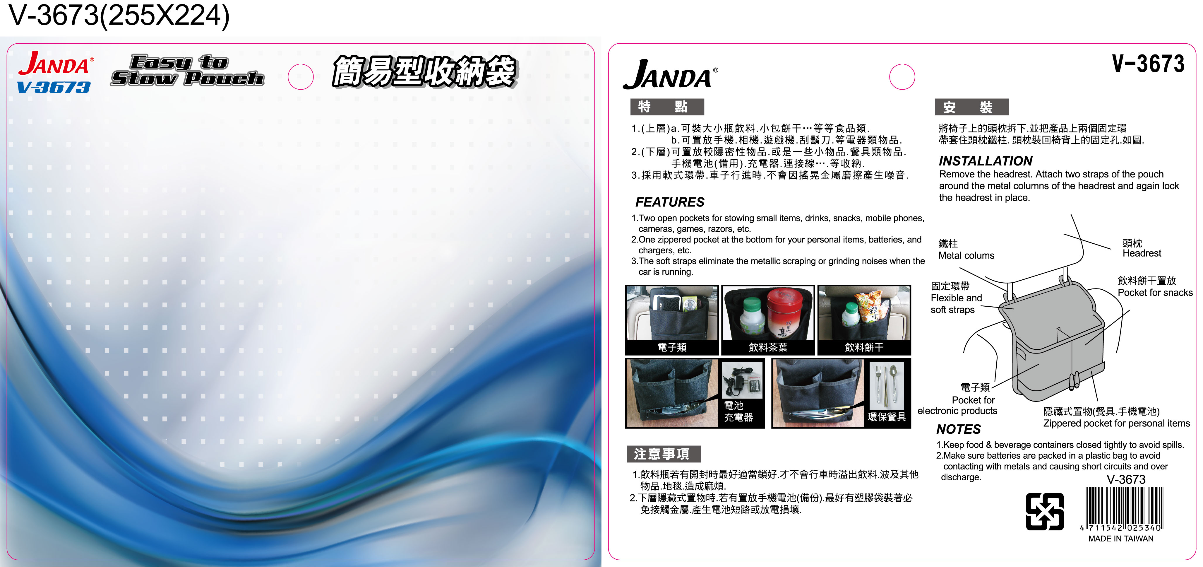 1. Two open pockets for stowing small items, drinks, snacks, mobile phones, cameras, games, razors, etc.