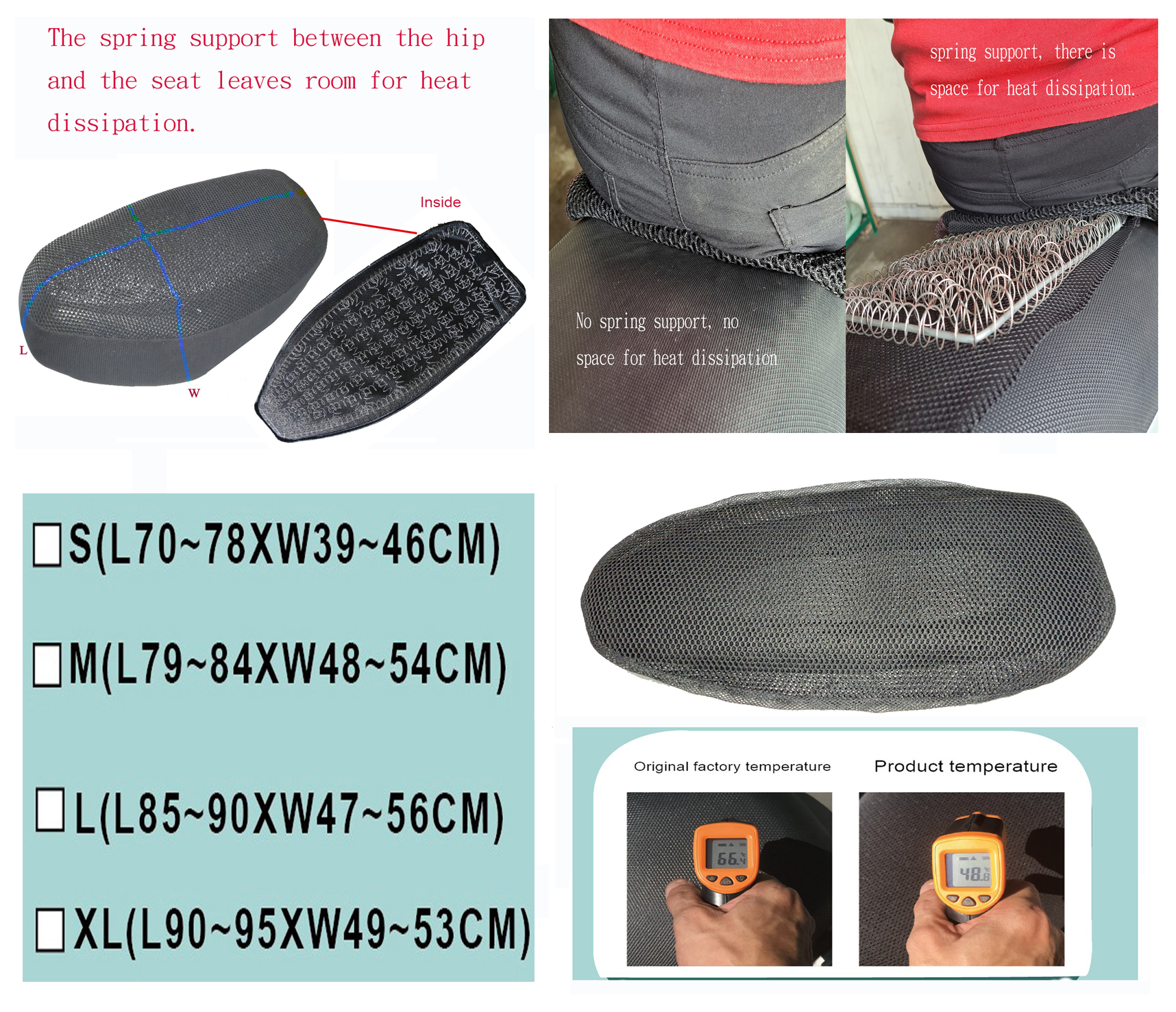 我們的摩托車座墊套使用高品質的3D網布材料,提供柔軟、舒適和透氣的駕駛體驗。獨特的彈簧編織網布提供支撐,同時促進空氣流通,即使在炎熱天氣中也能保持涼爽。