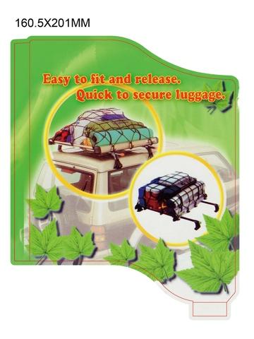 Model ID:V-2302ALuggage rack net. Carrying items for camping is placed on the roof rack. It is necessary to use a net to hold the item so that it will not fall. The net is hand-woven with rubber elastic rope. The whole net is elastic
