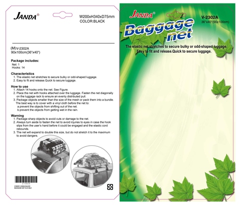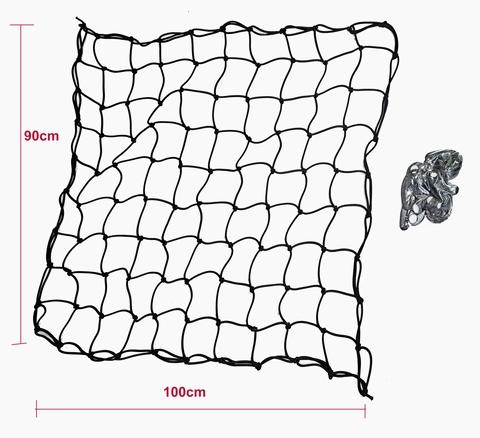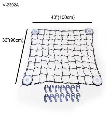 行李架收納網。露營時攜帶的物品放置於車頂行李架上,需使用網子固定,以防掉落。此網以橡膠彈性繩手工編織,整體具有彈性。