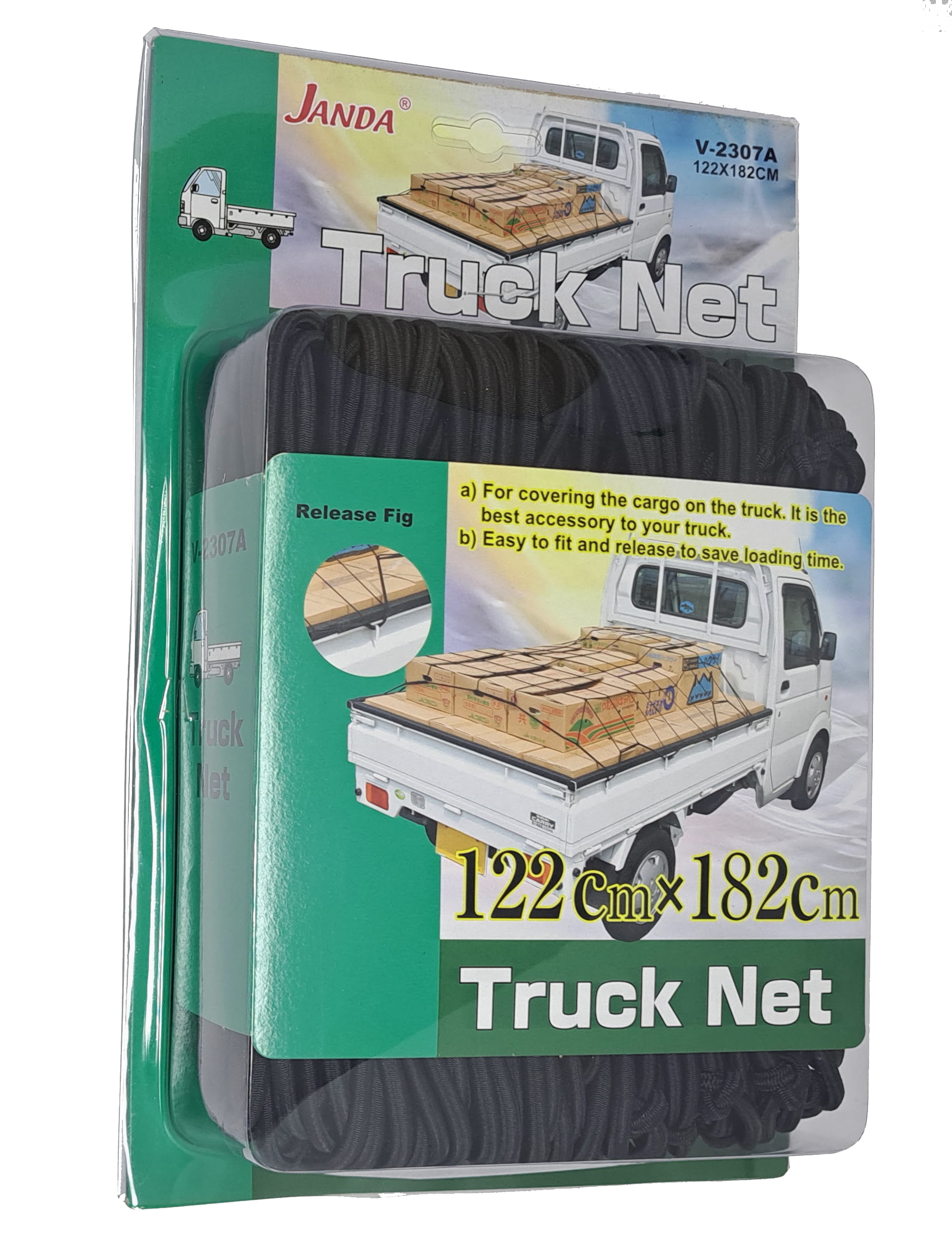 Model ID:V-2307AElastic Cargo Nets for Trucks Providing Easy Fit and Release. Truck Net 122 x 182cm(48” x 72”) V-2307