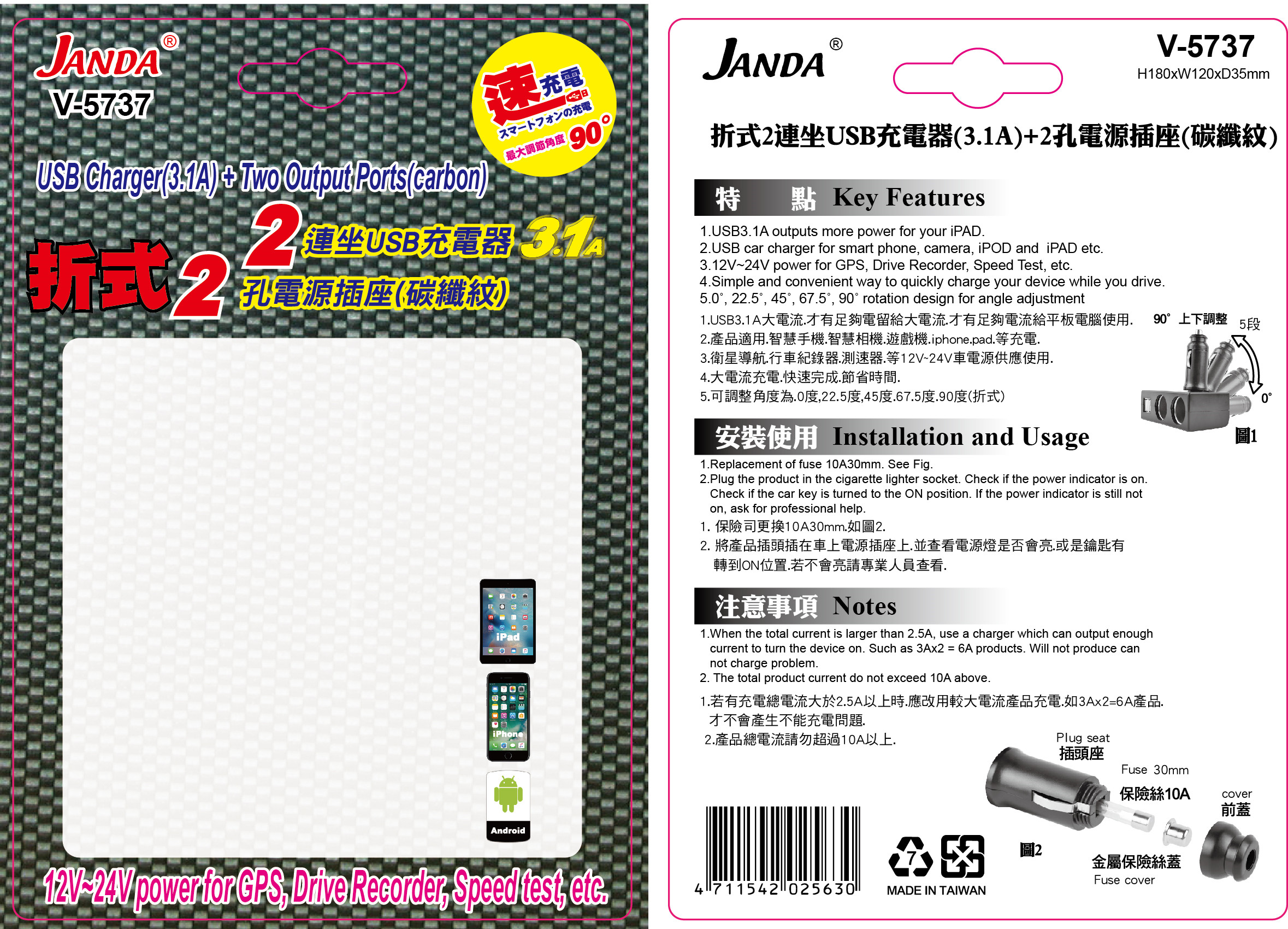 Model ID:V-5737v-5737 Folding carbon fiber pattern 2usb charger + 2 empty sockets
