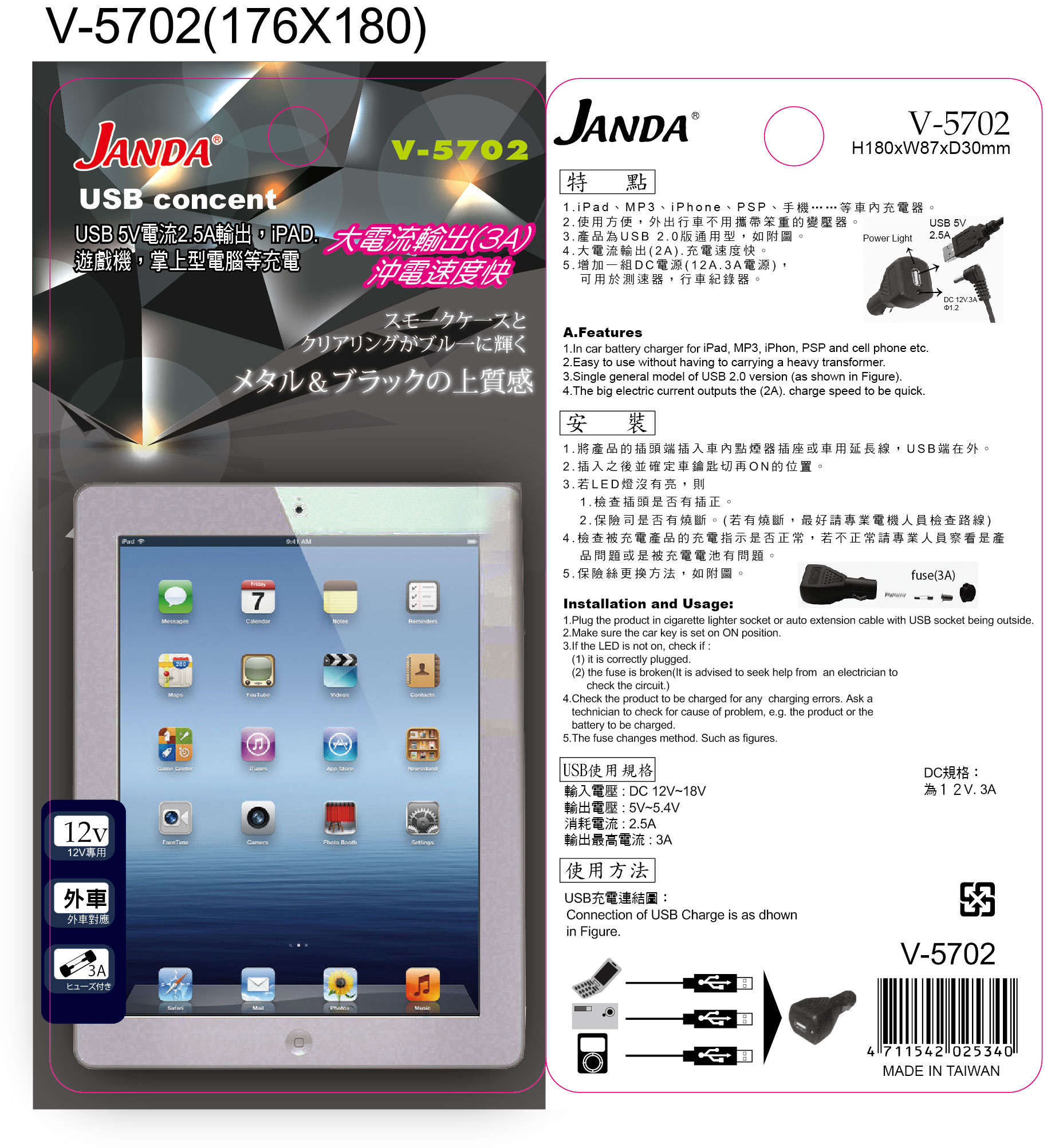 Features: 1. Flash drive, mobile phone, ipod, PDA...etc. in-car charger.