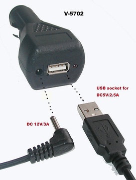 Model ID:V-5702In-USB car charger for flash disk, MP3, cell phone, iPAD and PDA etc.