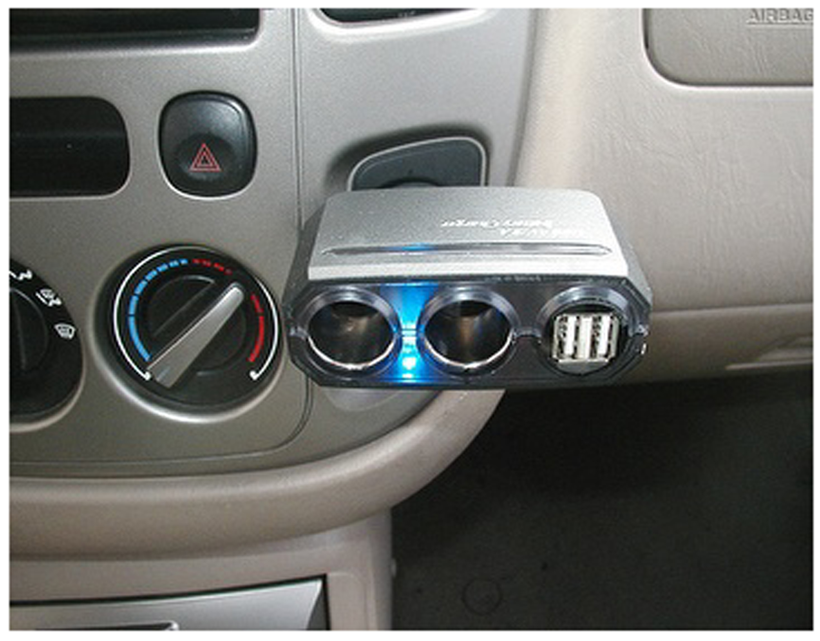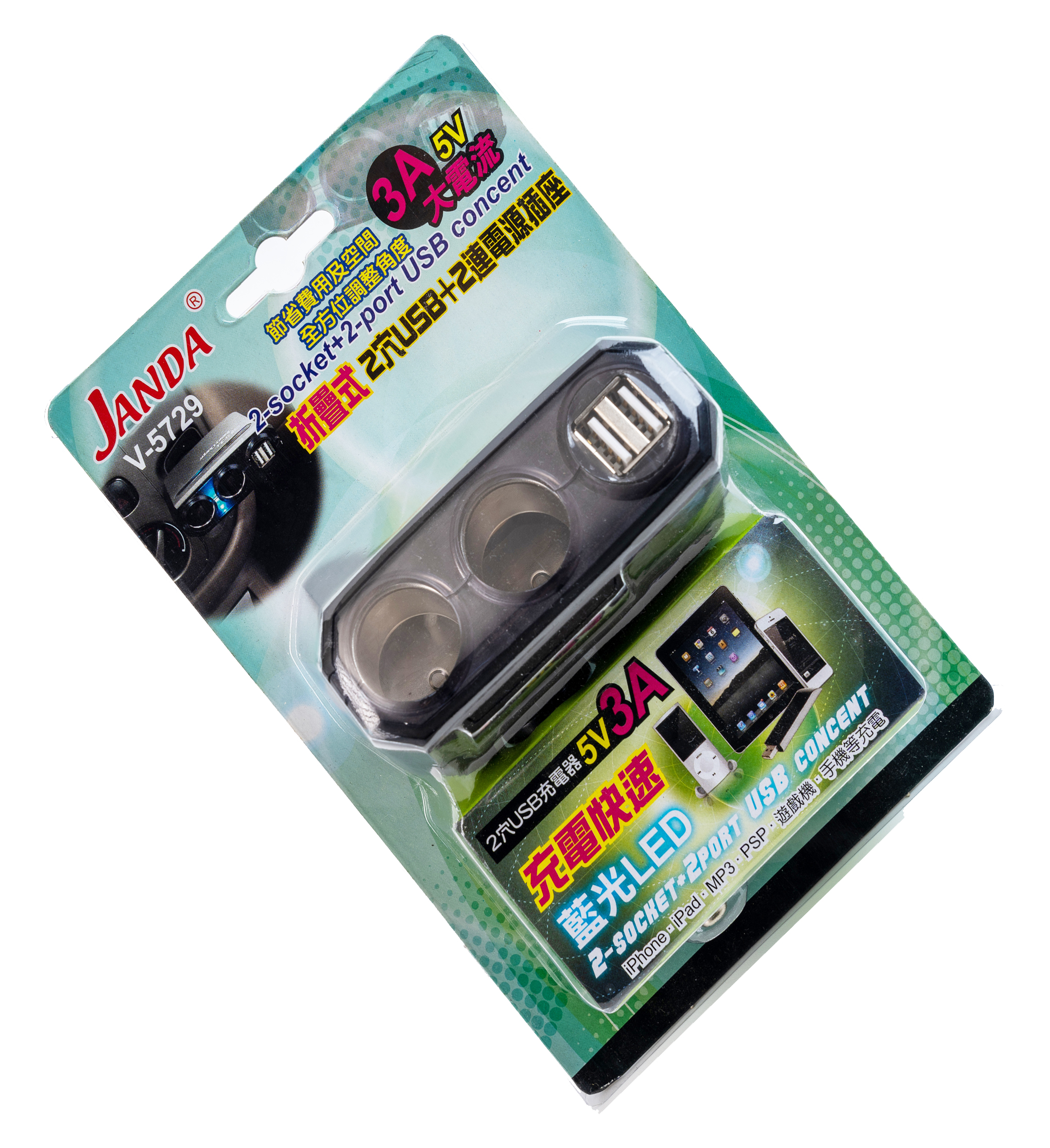 1. The 2-port USB car charger + 2 Receptacles, two functions inone to save cost and space;