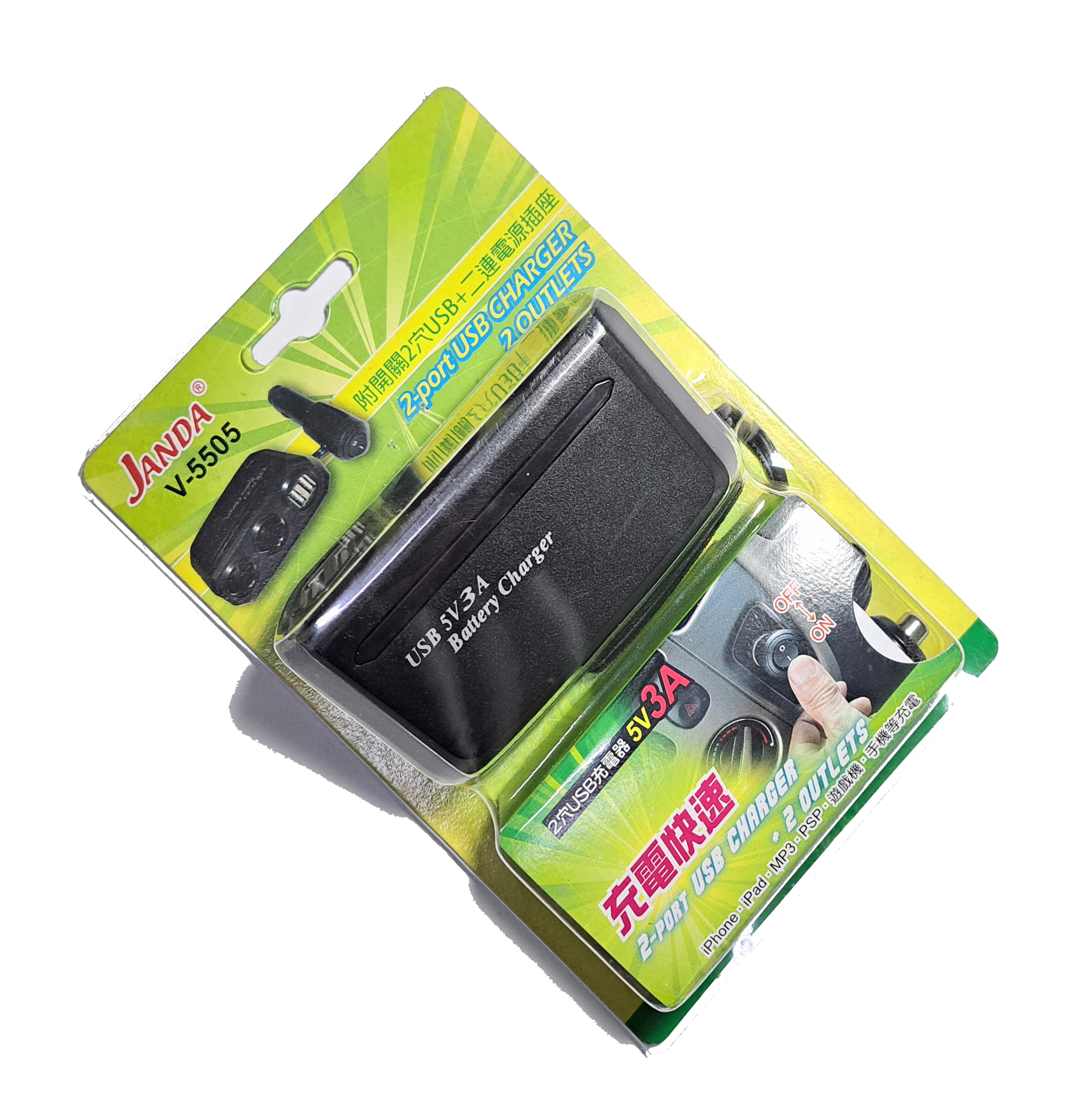 (2-port USB car charger 3A + 2 outlets) with a switch