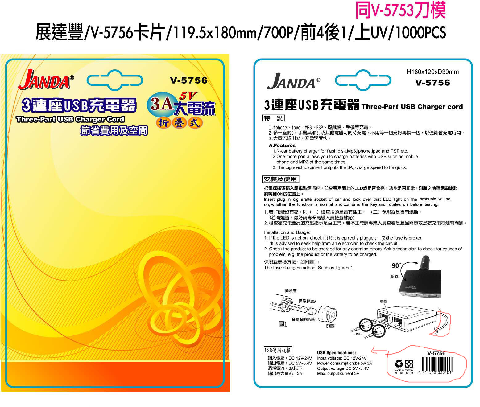 Model ID:V-5756V-5756 Three -port USB Charger(3A)