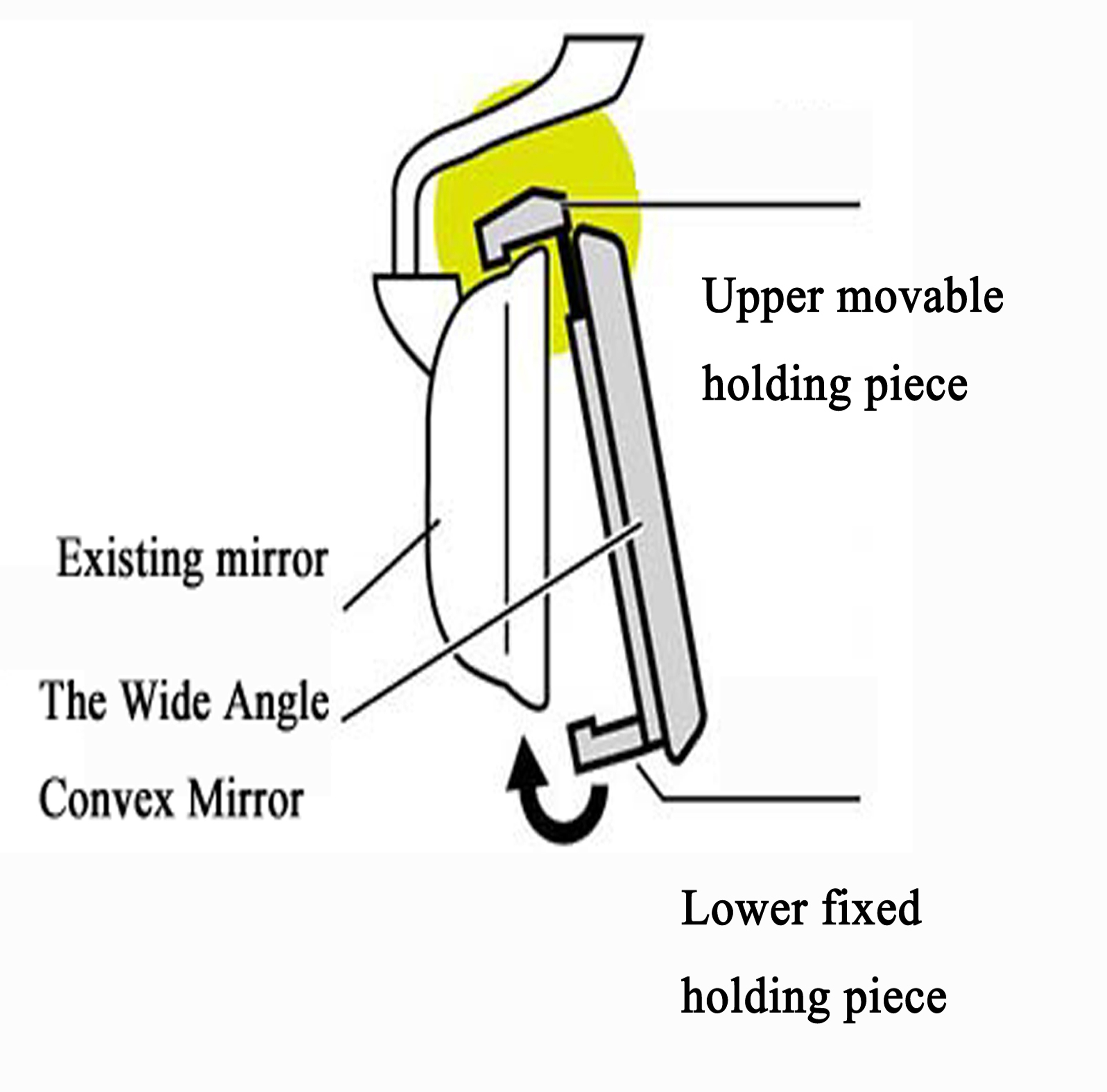 4. This car mirror can also be installed on the existing car mirror having a surface that is curved or rounded outward at the bottom. Fig. 3.