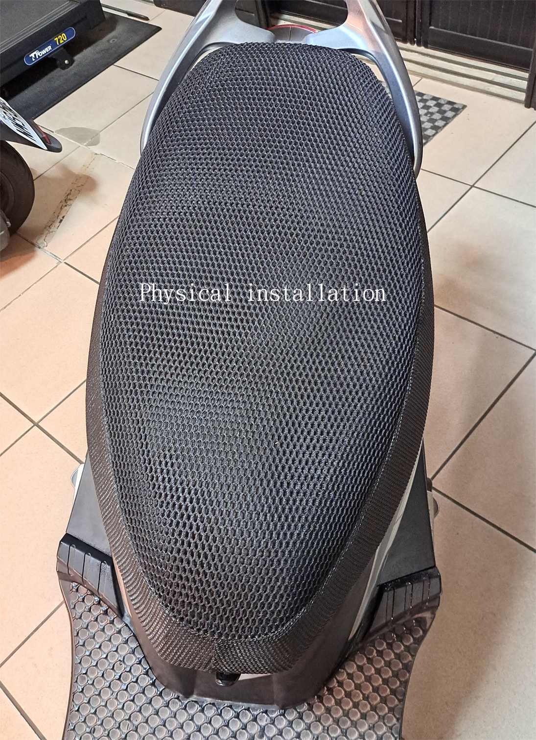 - 將產品直接套在機車坐墊上,比較尖的部位是前面座位,由前往後套套好時,