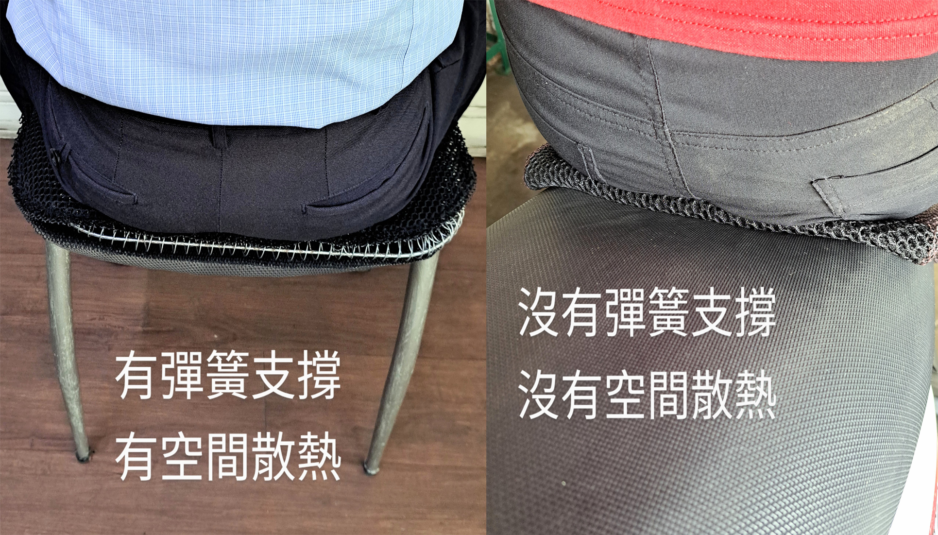 型號 ID:V-3922gar臀部和座椅之間的彈簧支撐為散熱留出了空間。